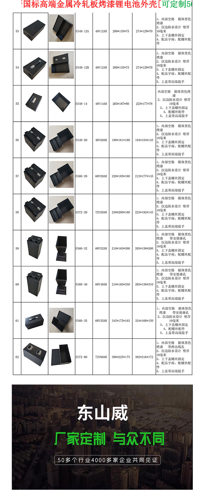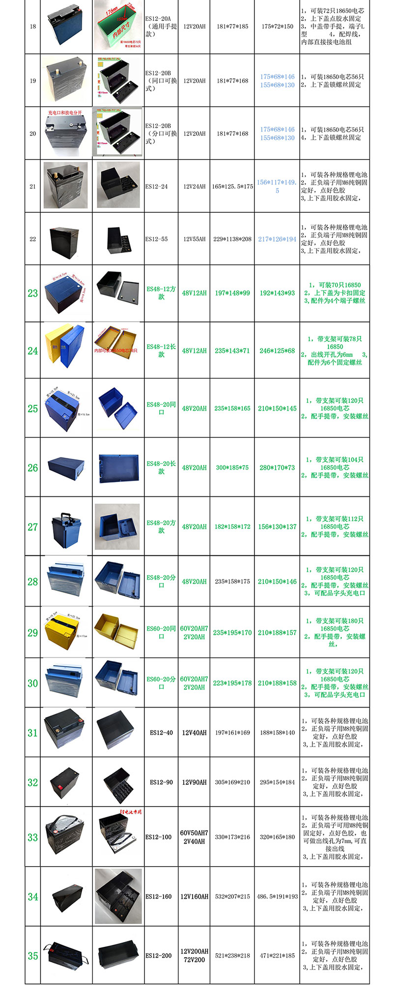 管理员 9 月, 周五, 2023 60V20AH 额定电压 60V 额定容量 24Ah 电芯类型 锂离子电池 电芯型号 32700-6000mAh 串并数 19S4P 工作电流 20A 充电电流 10A 峰值电流 50A 放电温度 -20~60℃ 充电温度 0~45℃ 截至电压 38V 过流保护 80A 通讯方式 / 温度保护 有 防水等级 无 外壳材质 SECC 尺 寸 83.5*295*255mm 重 量 9.5kg 评论 0
