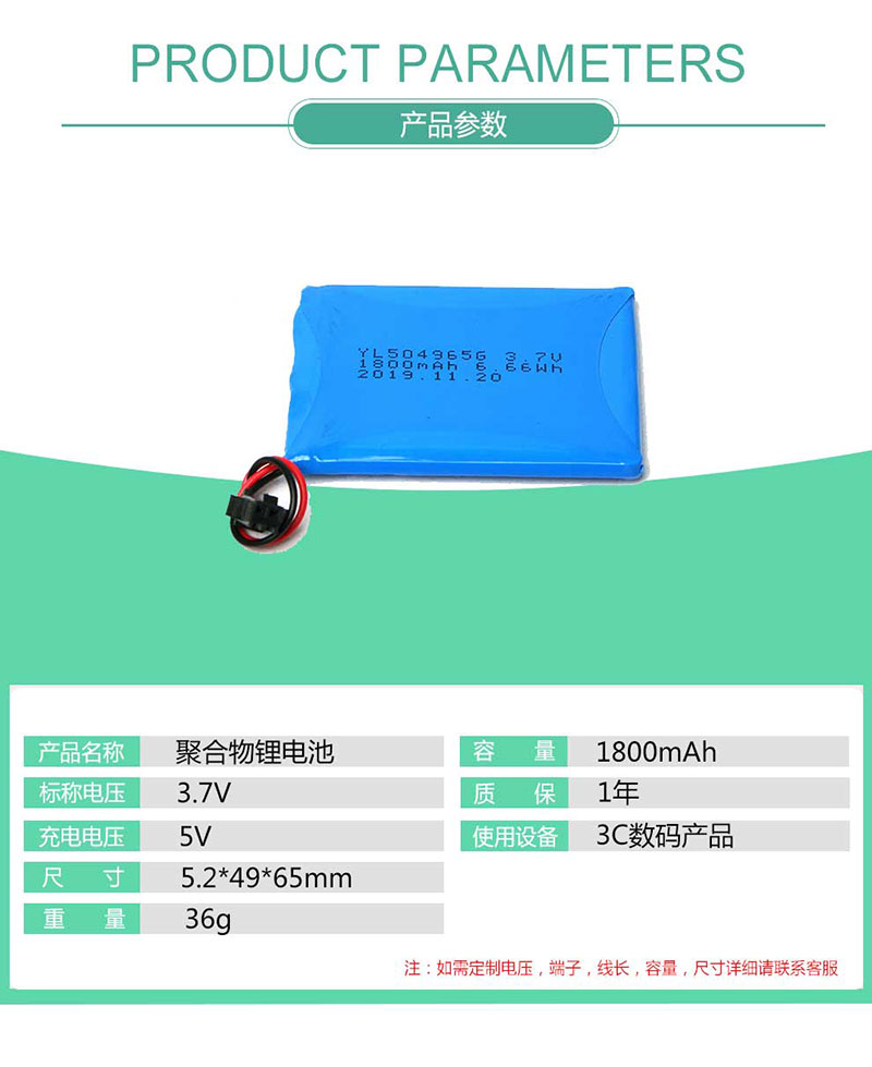 管理员 8 月, 周日, 2023 耐高温锂电池 品牌:东山威 加工定制:是 电池类型:聚合物锂电池 标准电压:3.7V 外型尺寸:5*49*65(mm) 容量:1800mAh 适用类型:户外特种设备 储存温度:-10℃~45℃ 工作温度:-20℃~80℃ 支持定制,电压,型号,外壳,端子,线长 评论 0