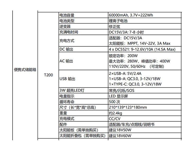 管理员 9 月, 周五, 2023 UPS便携储能 电池容量 60000mAh, 3.7V=222Wh 电池类型 锂离子电池 逆变器 修正弦 充满电时间 DC15V/3A: 7-8 小时 充电方式 适配器:DC15V/3A 额定功率:200W 最大功率:280W,峰值功率:400W 电量指示 LED 显示屏 循环寿命 500 次 尺寸(长*宽*高*总高) 210*139*123*180mm 评论 0